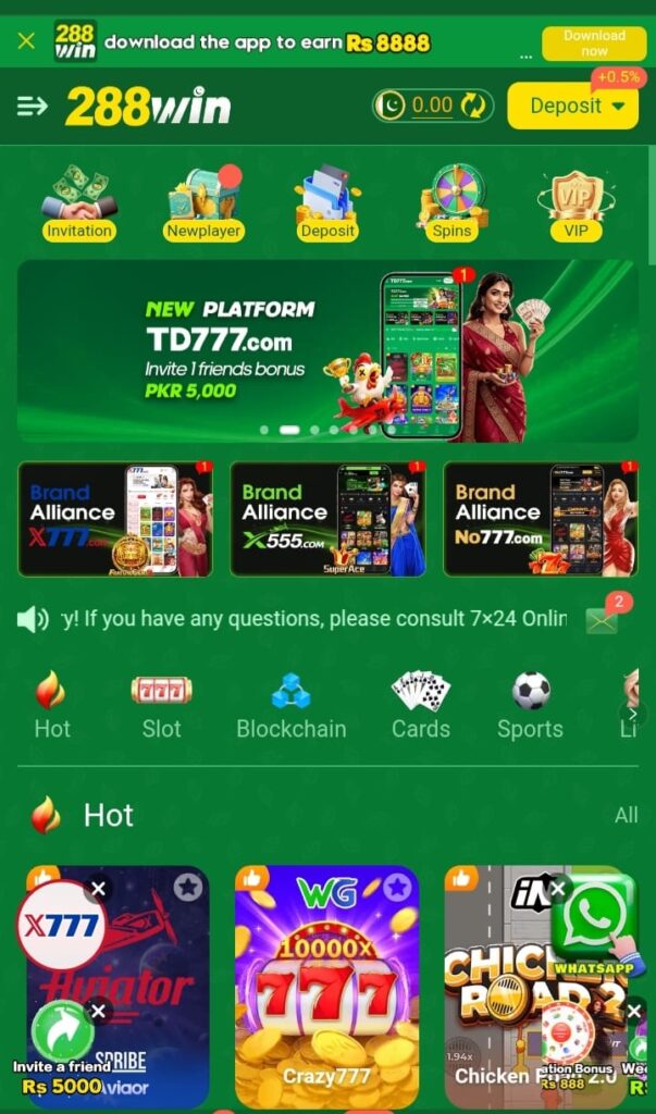 288 Win App is an online casino-style gaming platform where users can play different types of games and earn rewards. It mainly includes popular options like slot games, card games, and lucky number or betting-style games. Players can join the platform, create an account, and start playing using real or in-app money.
